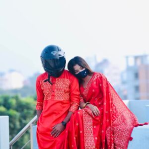 💖 লাভ বার্ড কাপল কম্বো 14 (শাড়ি + ম্যাচিং পাঞ্জাবি + ব্লাউজ পিস)