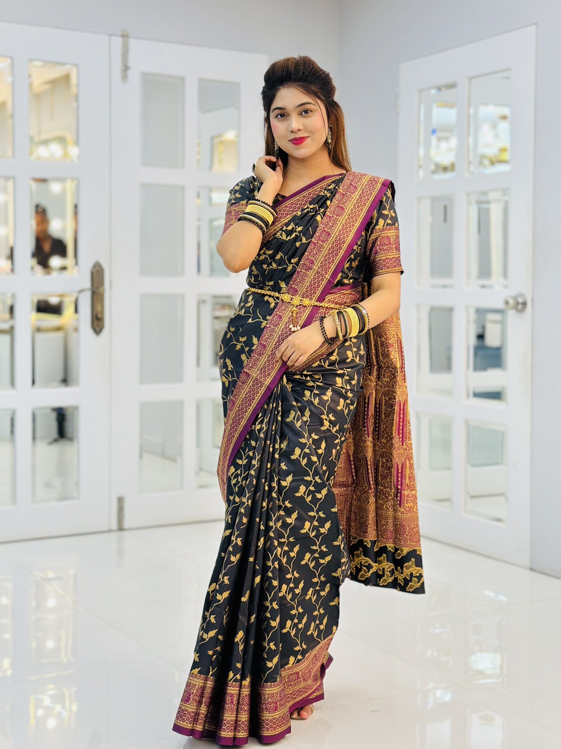 এই প্রিমিয়াম কাশ্মীরি লতা কাতান শাড়িটি তৈরি করা হয়েছে আধুনিকতা ও ঐতিহ্যের নিখুঁত সমন্বয়ে।