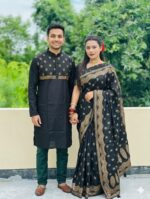 💖 লাভ বার্ড কাপল কম্বো 09 (শাড়ি + ম্যাচিং পাঞ্জাবি + ব্লাউজ পিস)