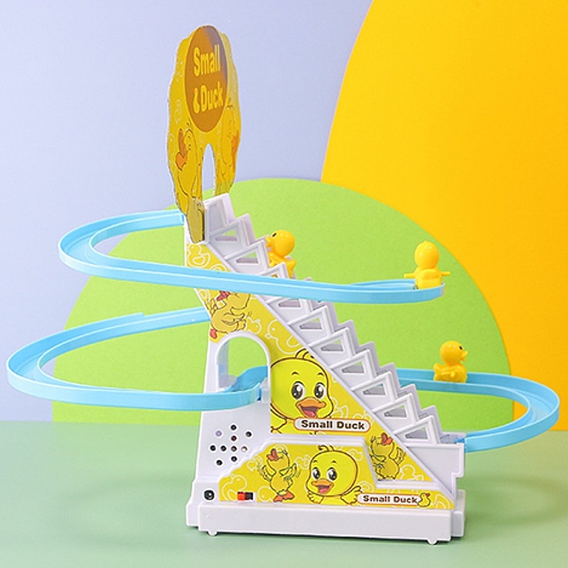 Automatic Duck Climbing Stairs Toy with Music & LED Lights | Cute Duck Slide Escalator Track Toy for Kids